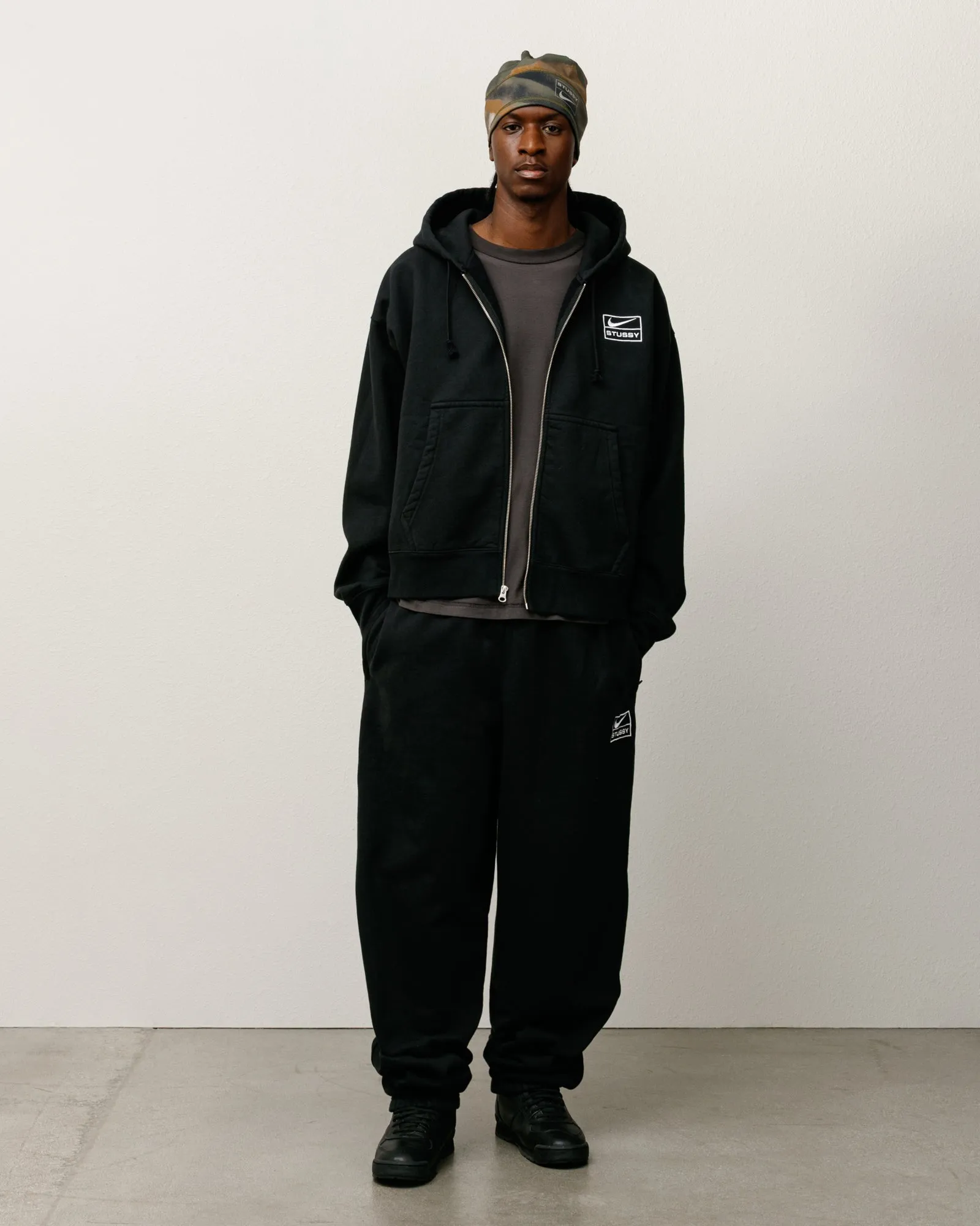 ステューシー&ナイキ ストーンウォッシュ フリースパンツ ブラック