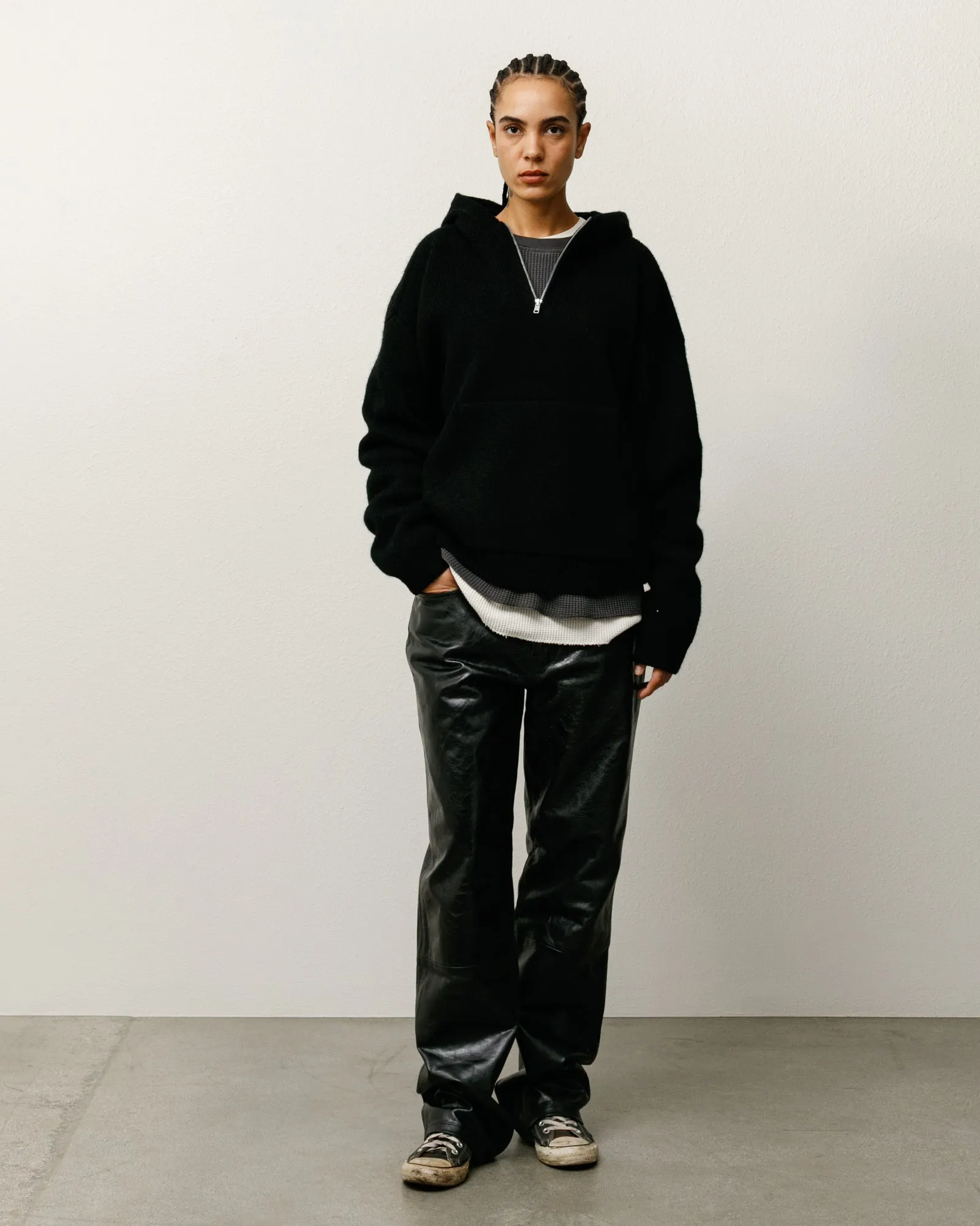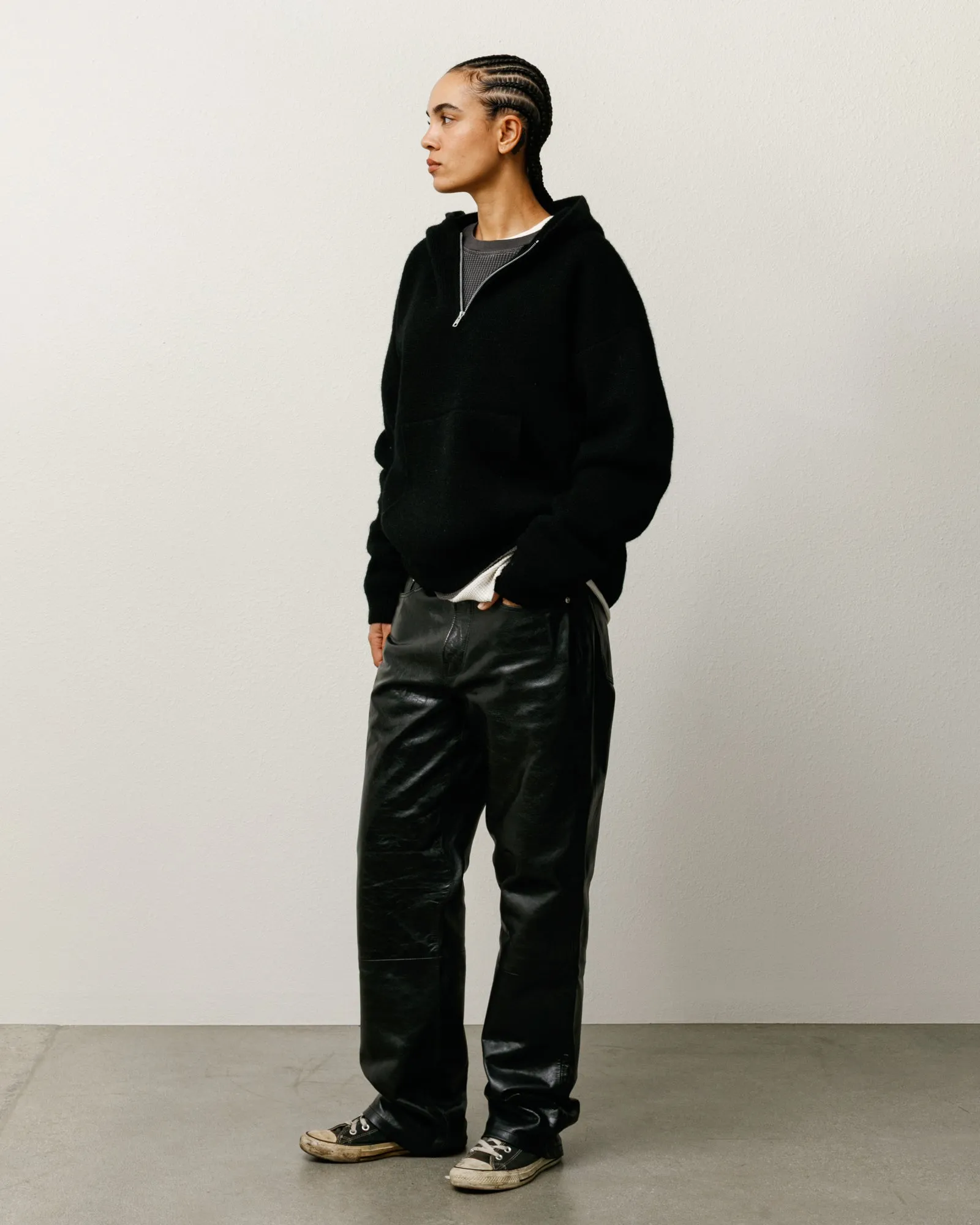 ニュークラシックレザー ブラックパンツのスタイリング方法