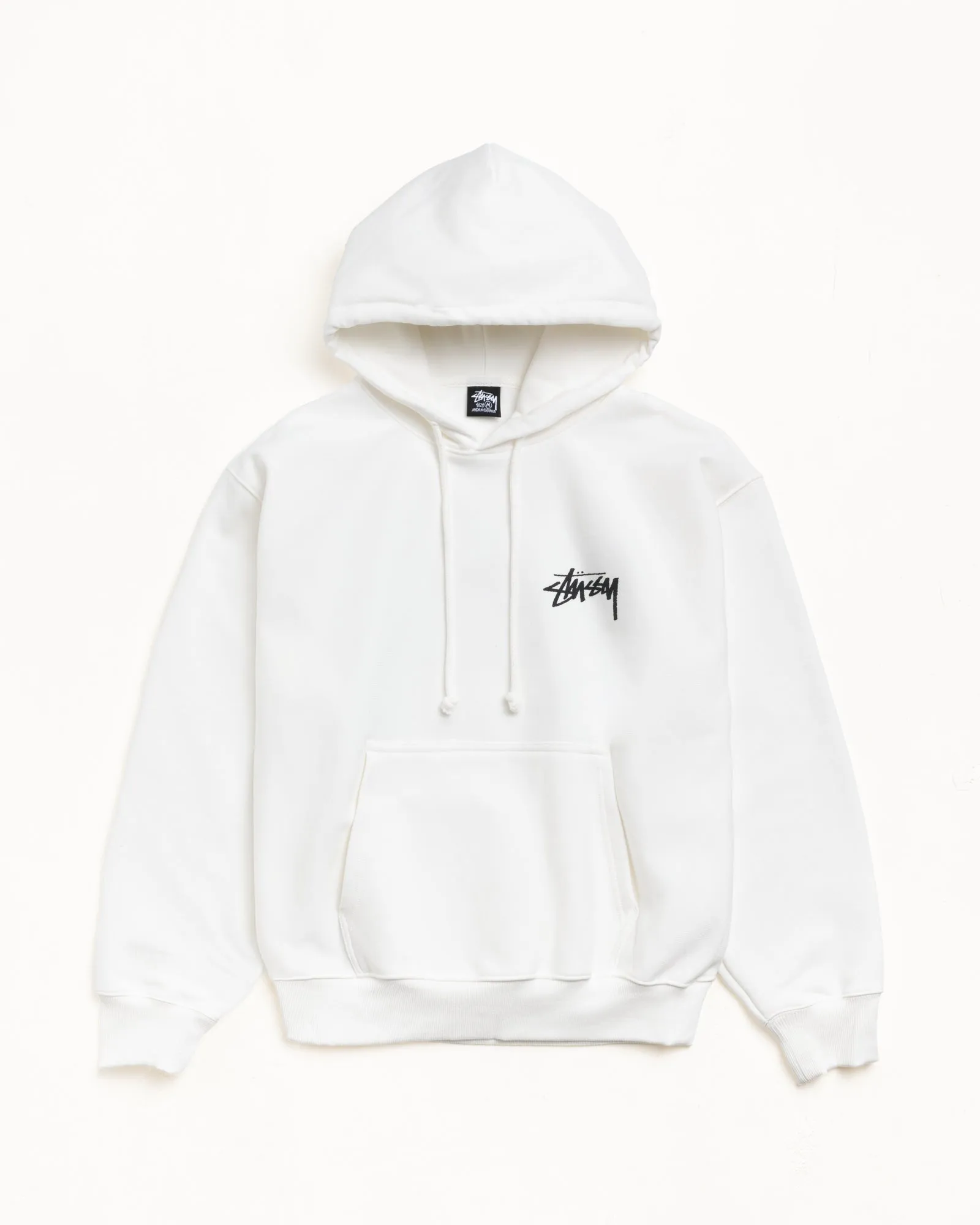 胸元に施されたステューシーのロゴは、このパーカーのシンプルさにブランドの強いアイデンティティを加えています。ロゴは控えめでありながら、ブランドの象徴的なデザインがしっかりと表現されており、ステューシーを愛するファッション愛好者にとっては、見逃せないディテールです。