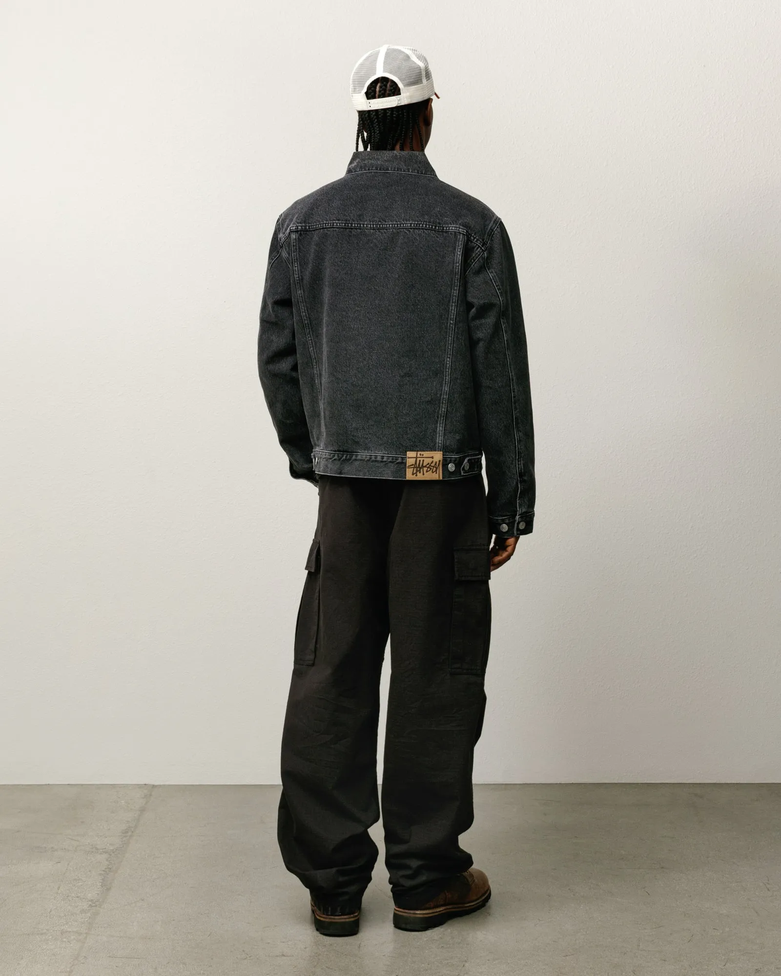 ステューシー 裏地付きデニム トラッカー ヴィンテージ ブラック ジャケット: 時代を超えたスタイルと快適さ
